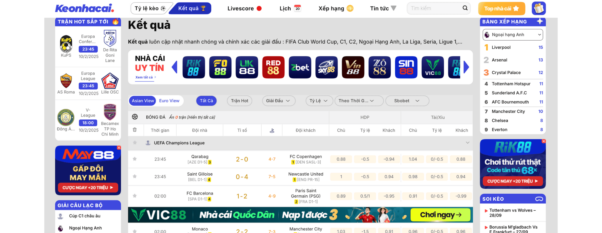 Kết quả bóng đá hôm nay trên keonhacai.uk.net